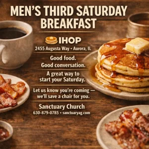 Mens Breakfast Third Saturday of every month 8:00 amJoin together as brothers in Christ to enjoy some food and fellowship every month. Save the Date SHARE ON Twitter Facebook Buffer LinkedIn Pin It
